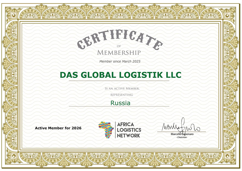 • Сертификат, подтверждающий членство в Africa Logistics Network (ALN) на 2026 год.