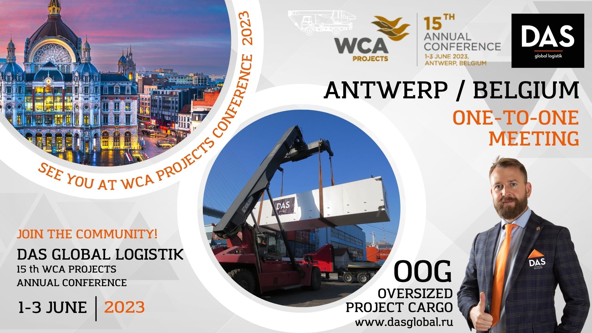 Для реализации логистических проектов и взаимовыгодного сотрудничества ДАС ГЛОБАЛ ЛОДЖИСТИК приглашает вас на 15-ю ежегодную конференцию WCA Projects, с 1 по 3 июня 2023 г. / Radisson Blu Astrid Hotel / Antwerp, Бельгия.