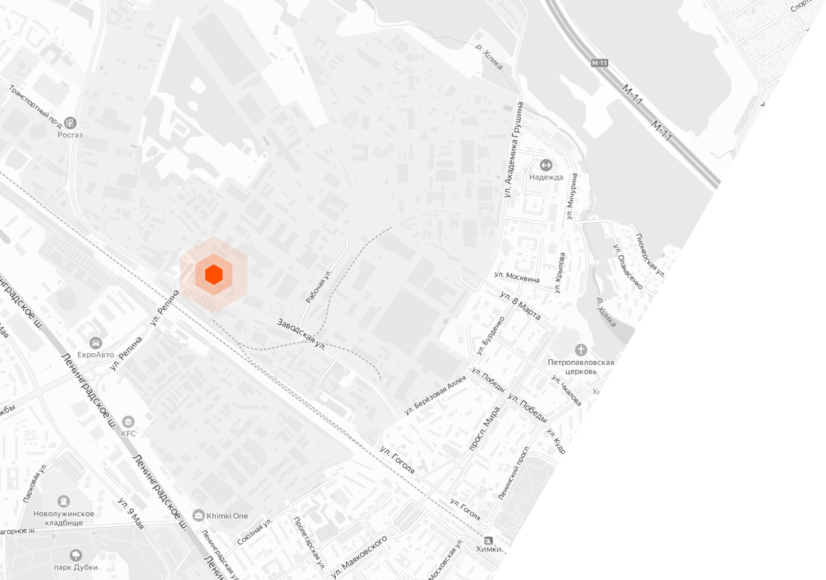 - Поворот направо на пересечении Ленинградского шоссе и ул. Репина;